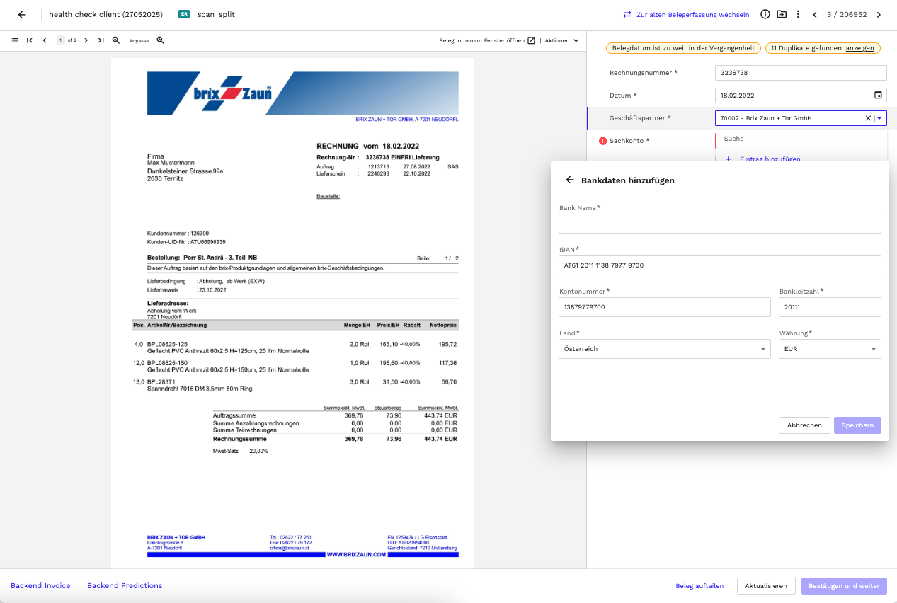 Beim Anlegen eines neuen Geschäftspartners füllt Finmatics jetzt wieder alle relevanten Felder automatisch aus, sobald eine gültige IBAN eingetragen wird.